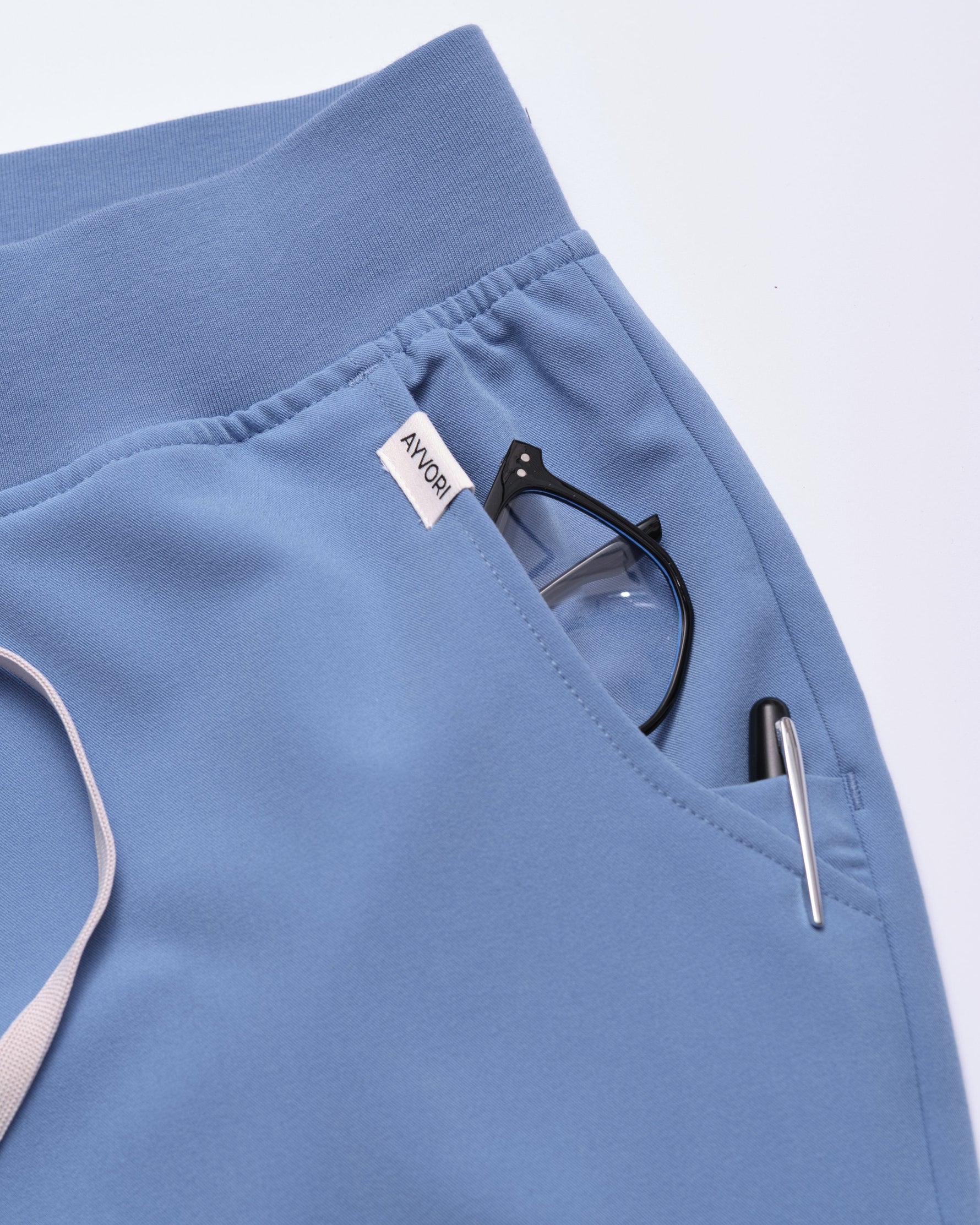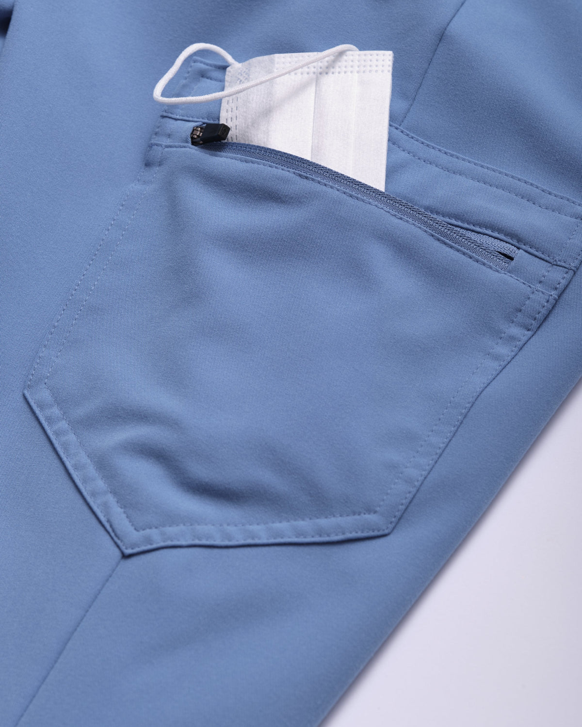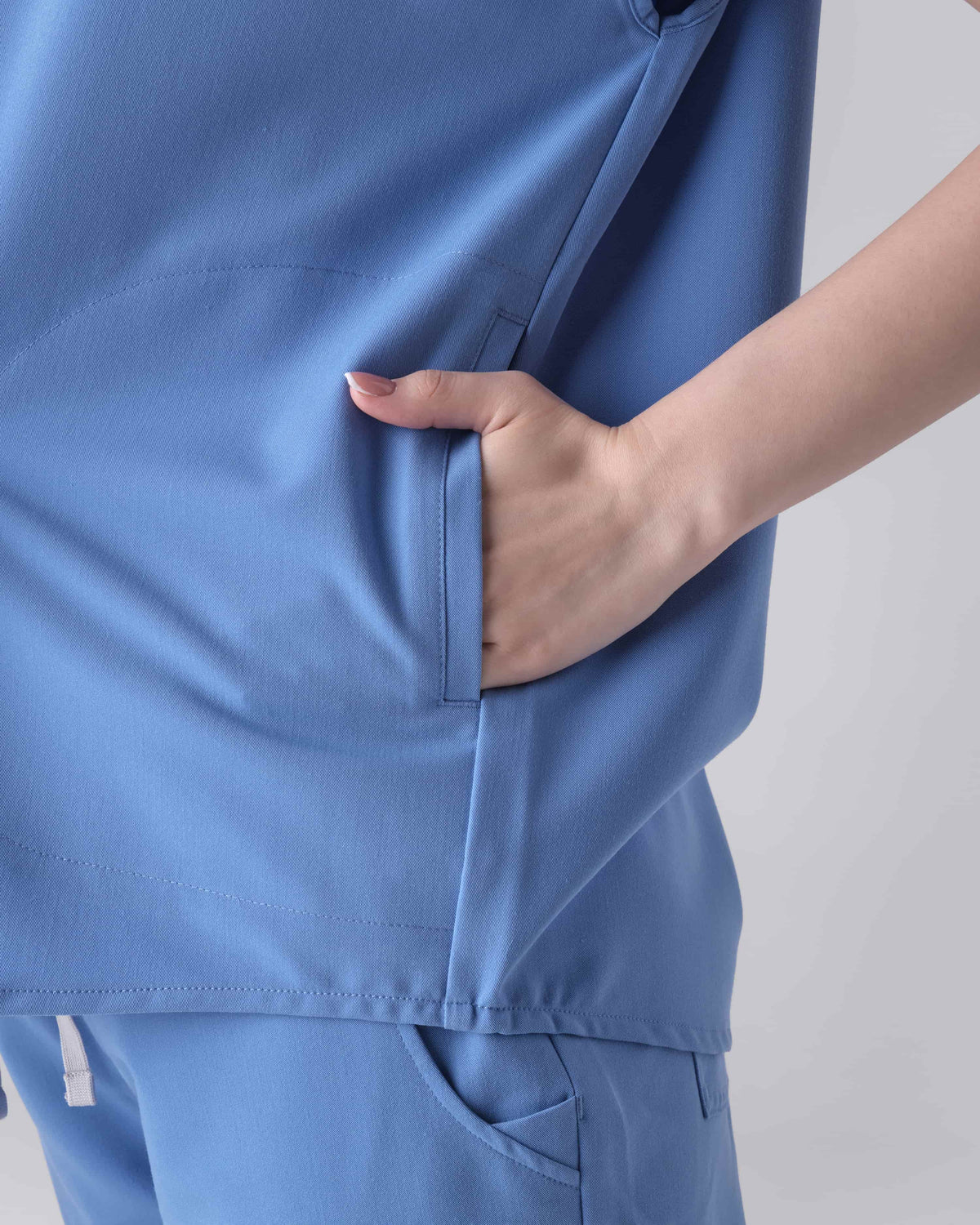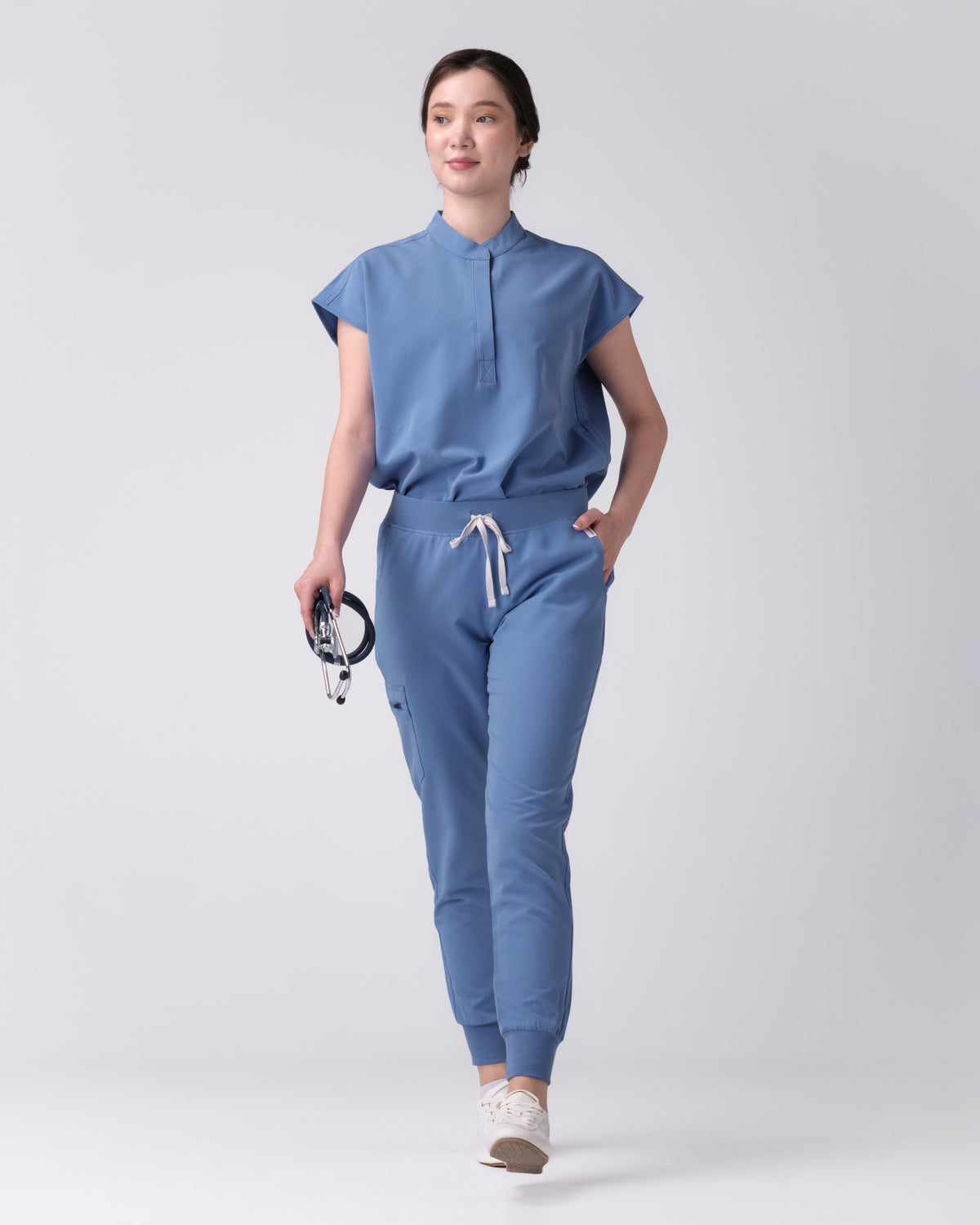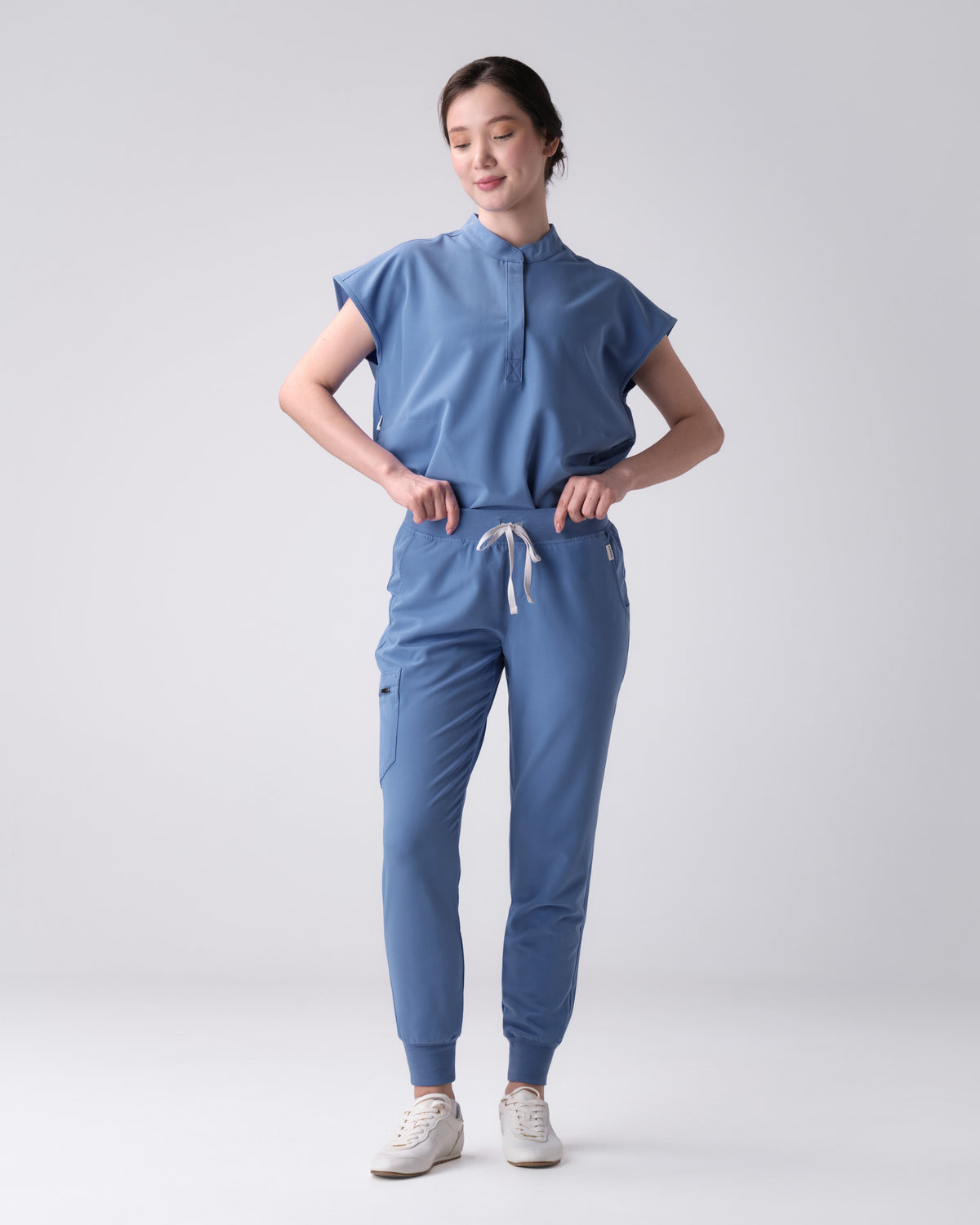 Готовый комплект медицинской одежды: Топ с воротником-стойкой и Джоггеры в голубом цвете.