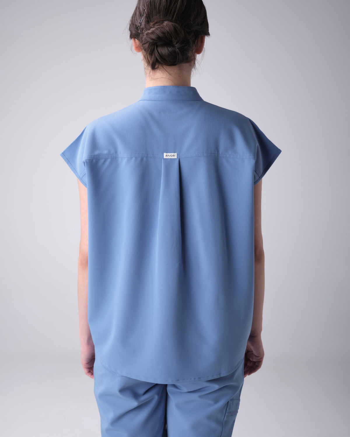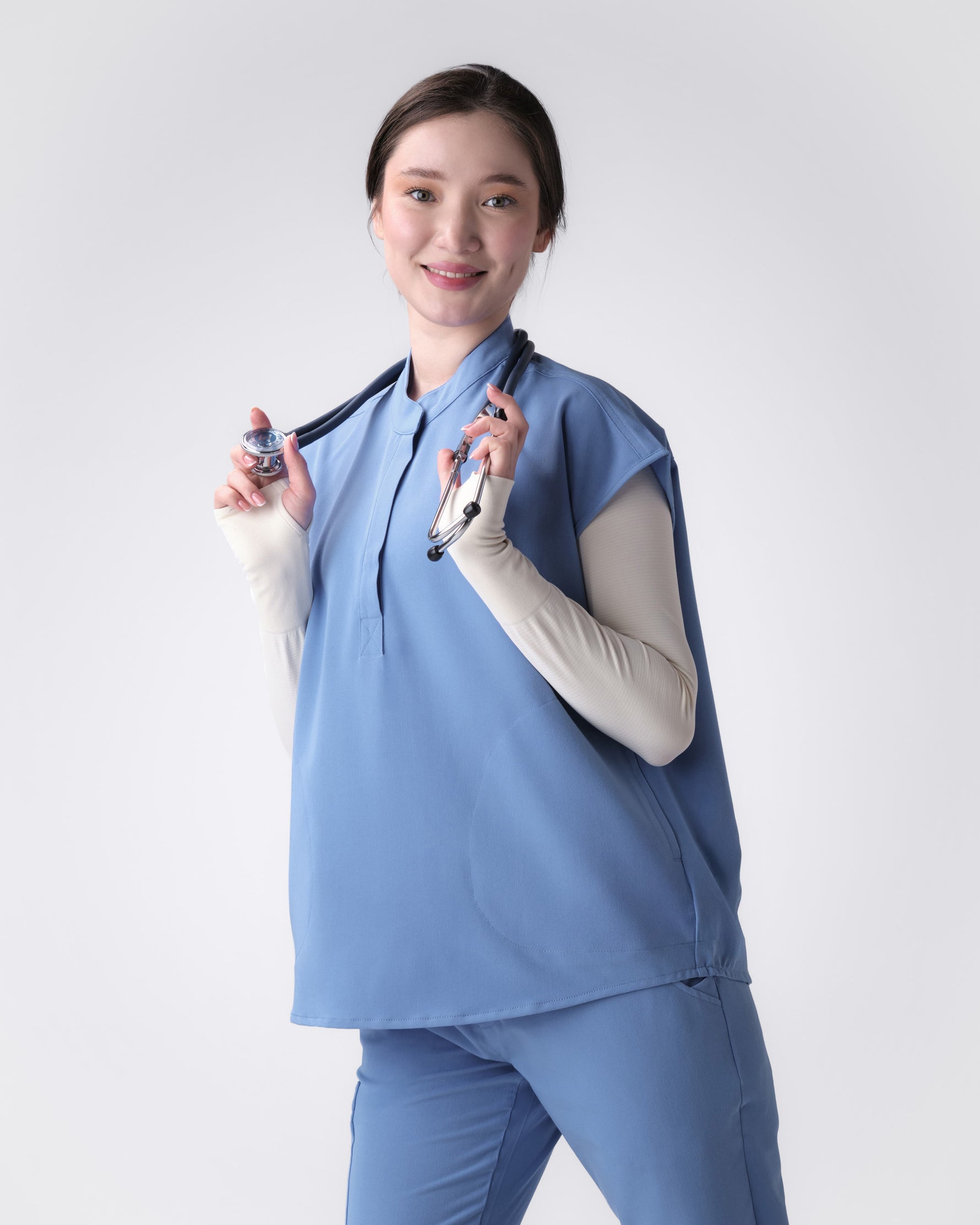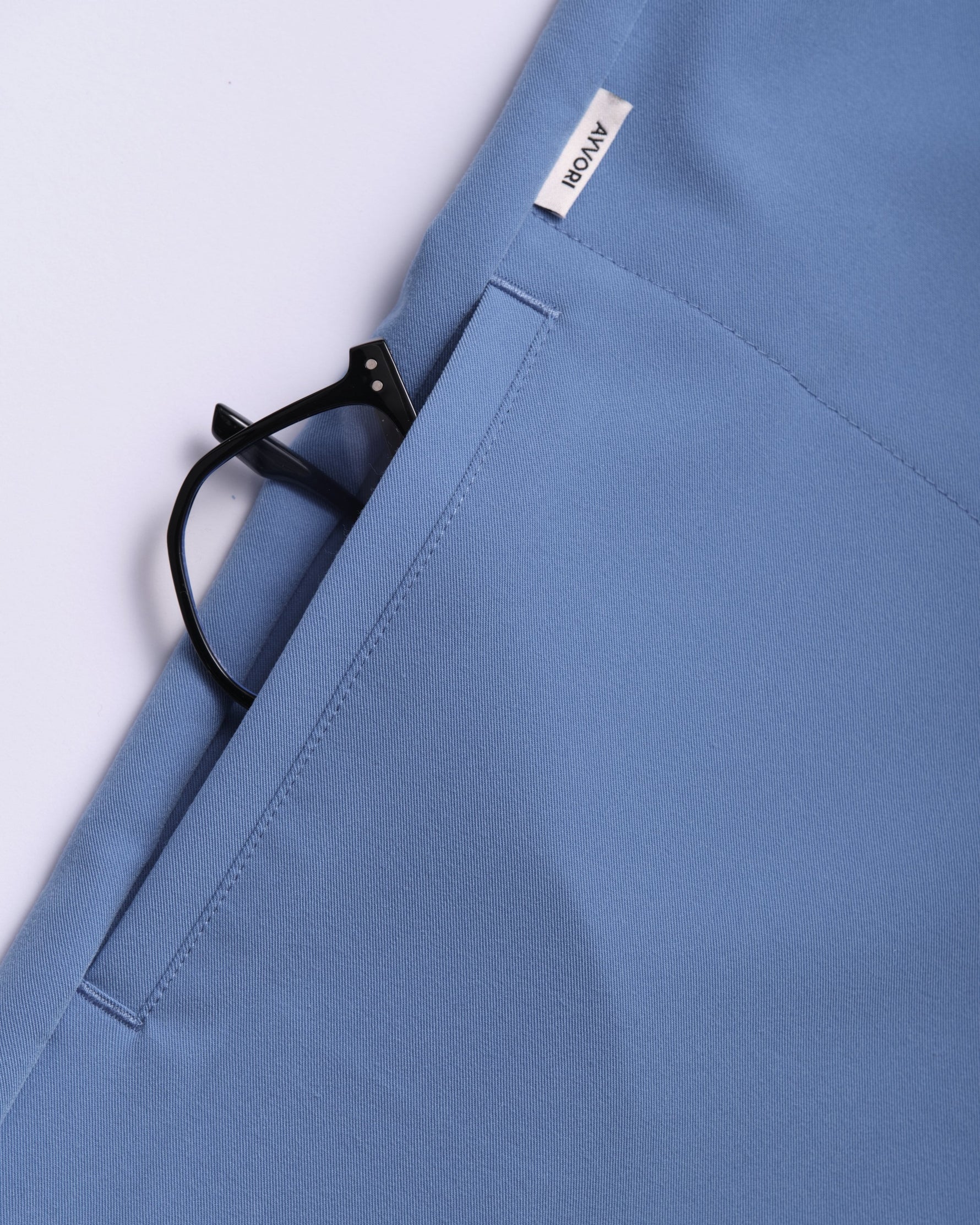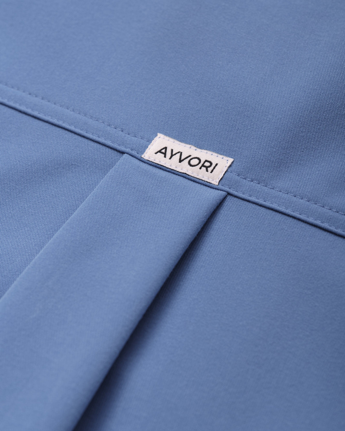 Готовый комплект медицинской одежды: Топ с воротником-стойкой и Джоггеры в голубом цвете.